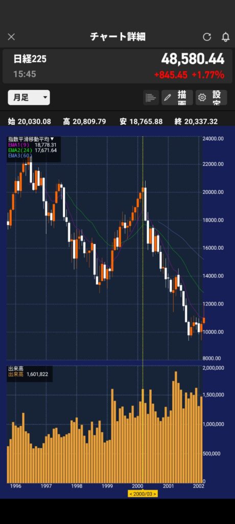 日経平均株価(月足) 出所:楽天証券(iSPEED)